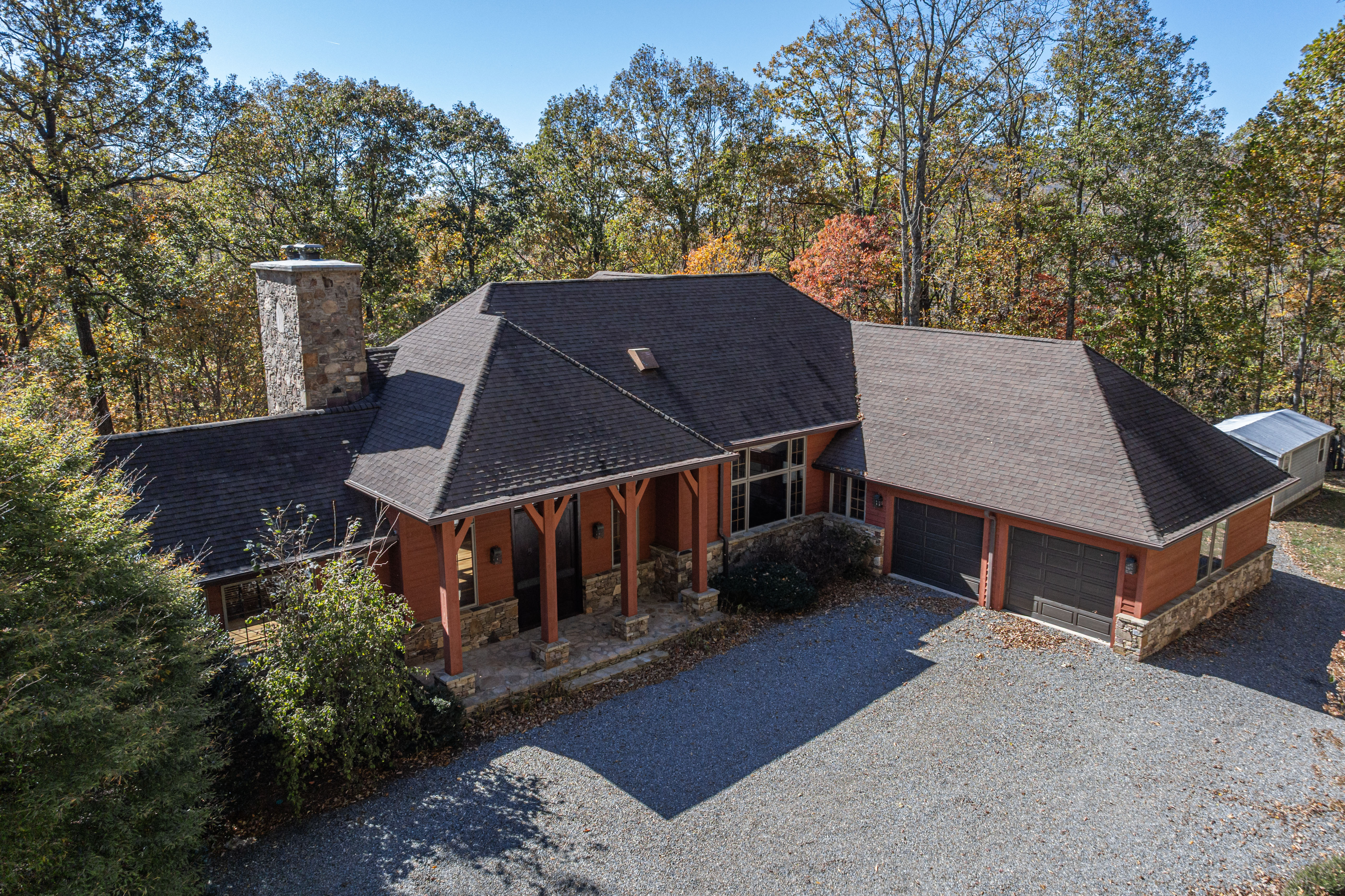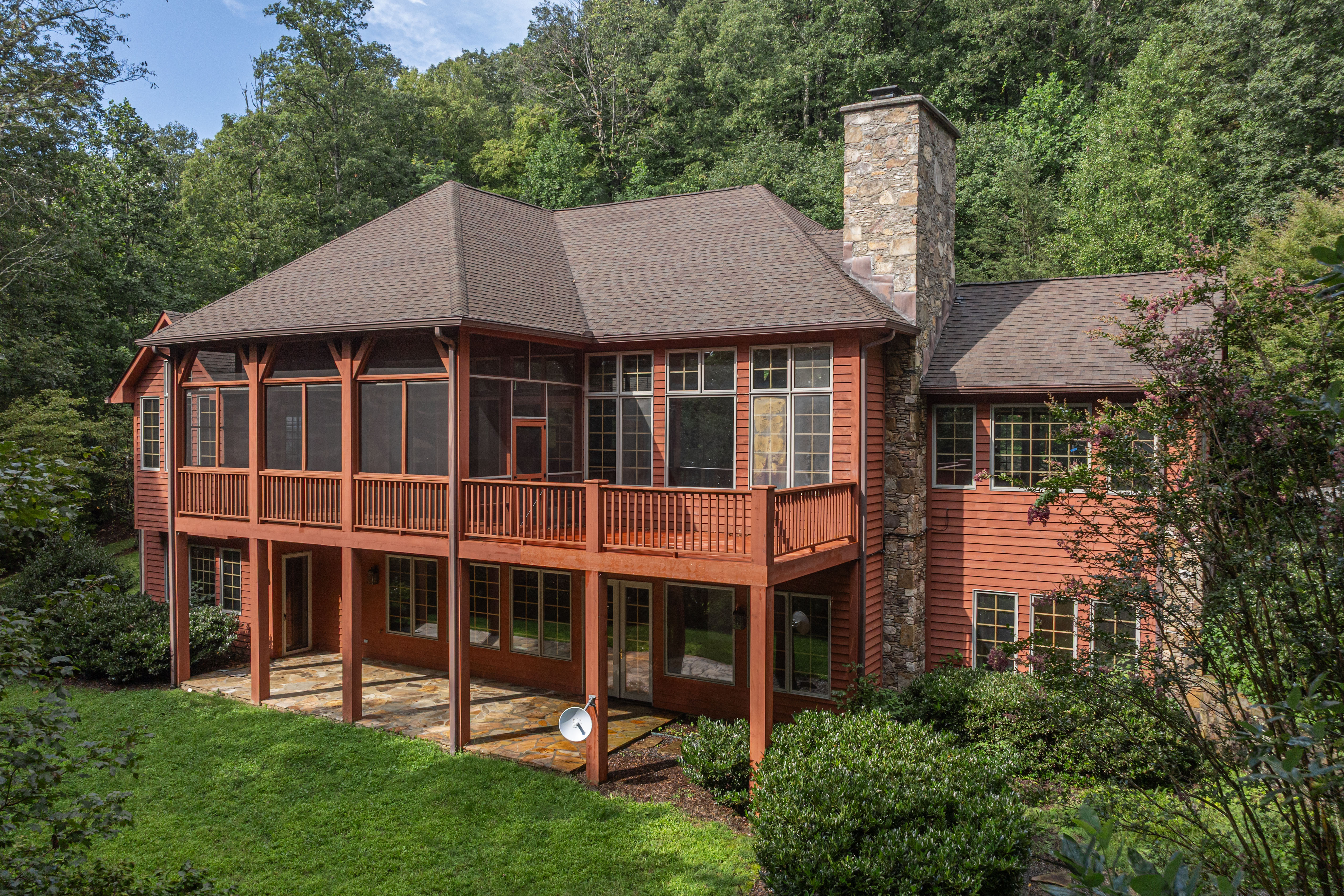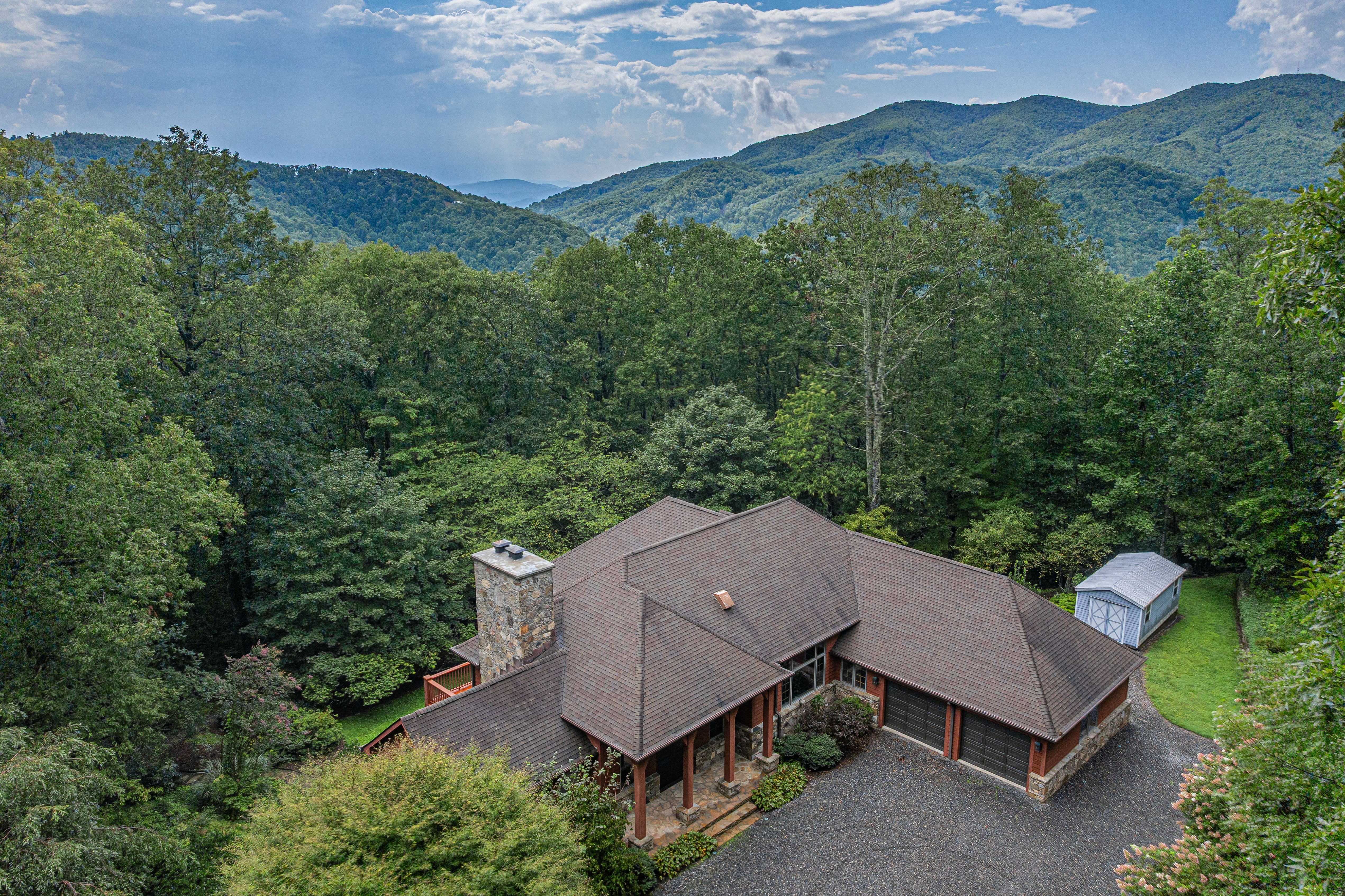 Custom-designed 4200+sf  3-bedroom, 3.5-bath home just outside of Black Mountain offers a perfect blend of modern luxury and natural beauty. Set on 238 acres of conservation land, the property includes a charming 1-bedroom, 1-bath guest house with kitchen, wood stove and large living room. Designed by architect Jan Grierson, the home boasts breathtaking mountain views and detailed landscaping incorporating native plants and beautiful stonework. Thoughtfully crafted with pocket doors, pine & oak floors, custom cherry cabinets, wood ceilings, high-end appliances, and several fireplaces, this home is elegant and functional.  A deep well provides pristine water, the generator can power the whole property, and high-speed internet ensures seamless connectivity. This property is a rare opportunity to experience tranquil mountain living without compromising on modern conveniences. Come watch Mother Nature change her gowns across the seasons of WNC.